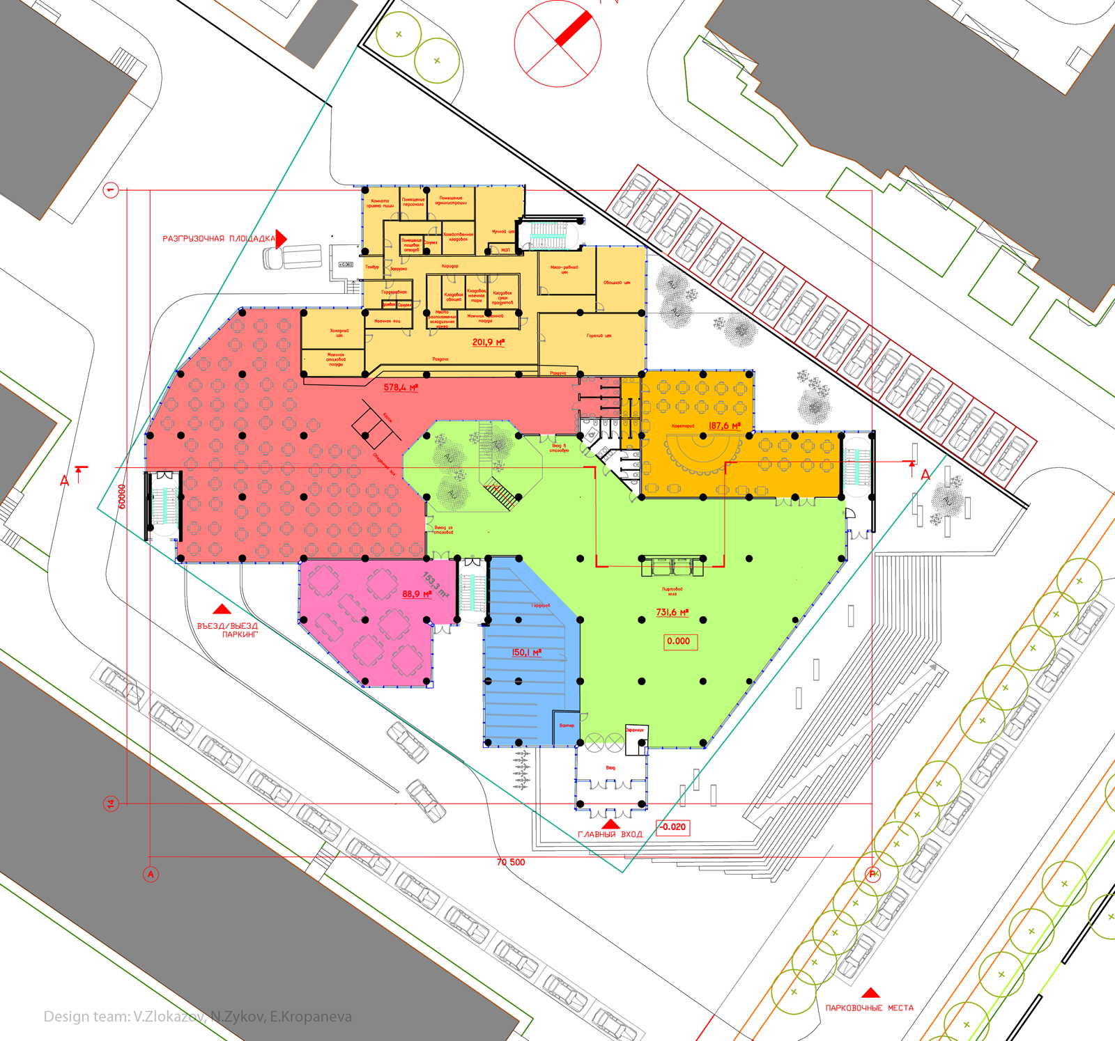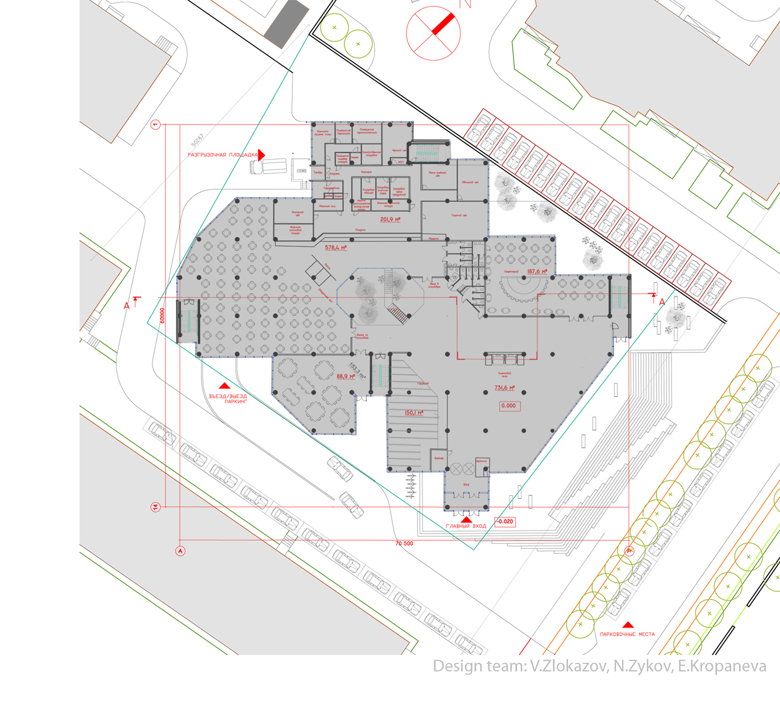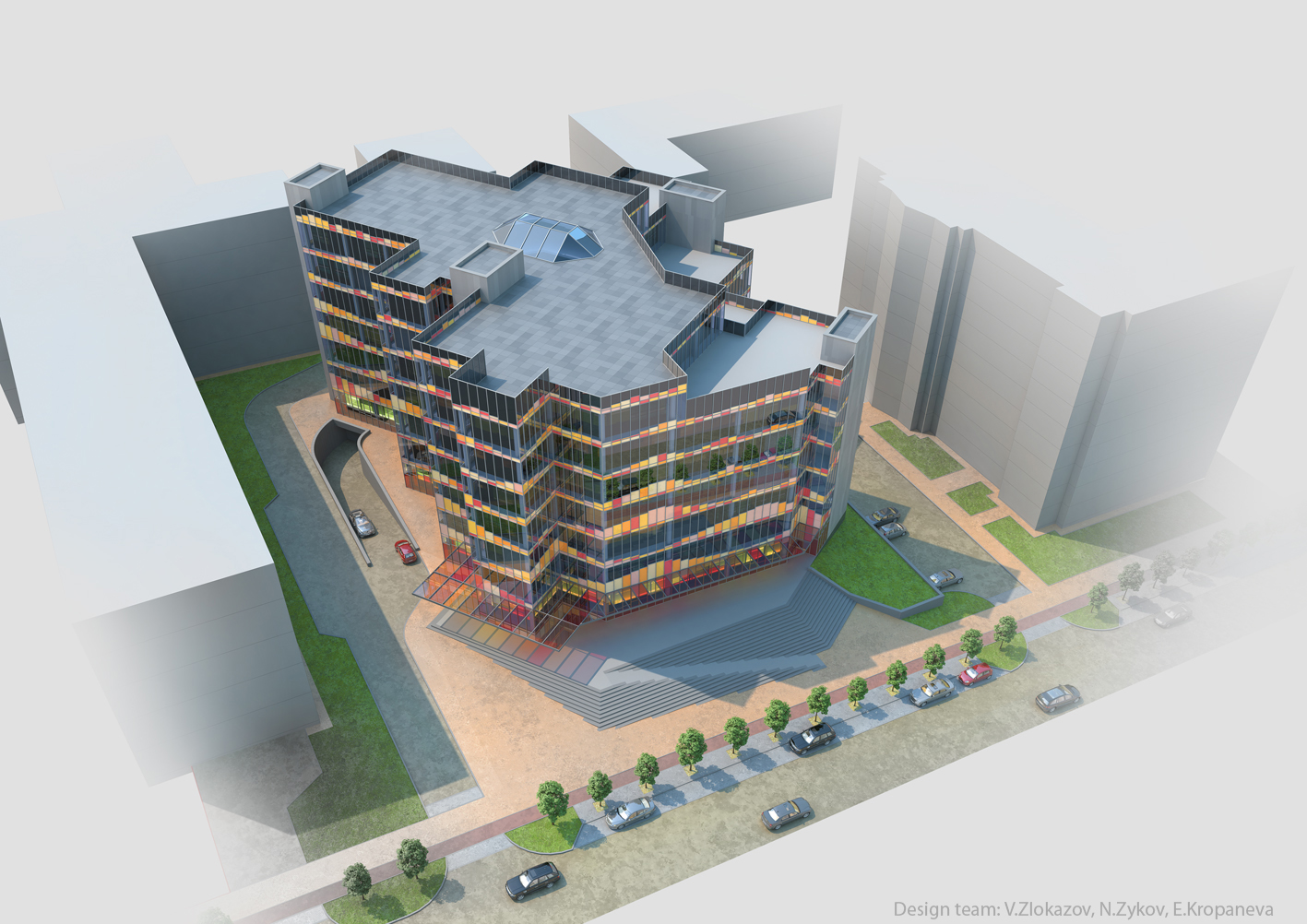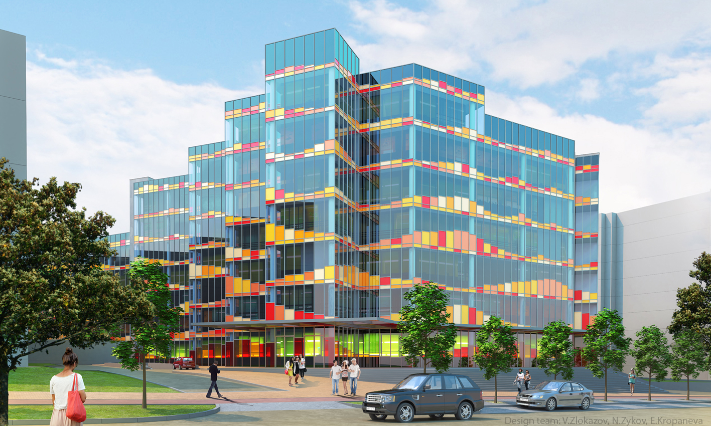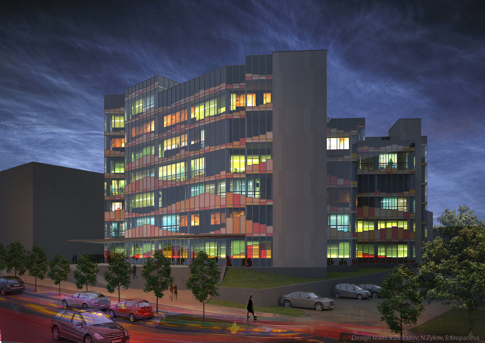 Команда: Николай Зыков — технический консультант, Владимир Злоказов — транспорт, благоустройство, 3D визуализация, Елена Кропанева — концепция, планировки