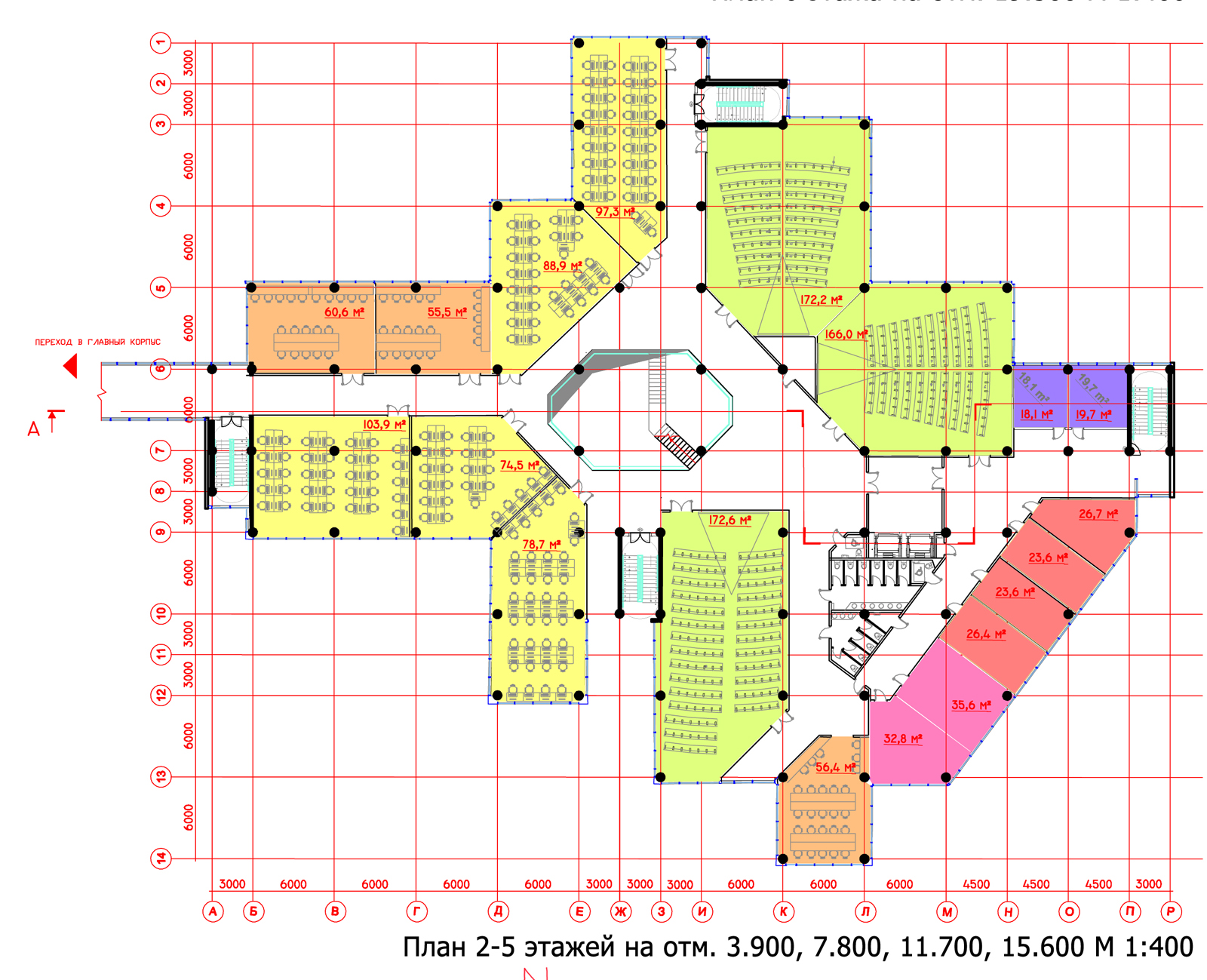 - Задачи создания оптимального режима инсоляции помещений: помещения аудиторий и административные помещения расположены вокруг центрального атриума сиспользованием максимально возможной площади оконных проемов.