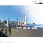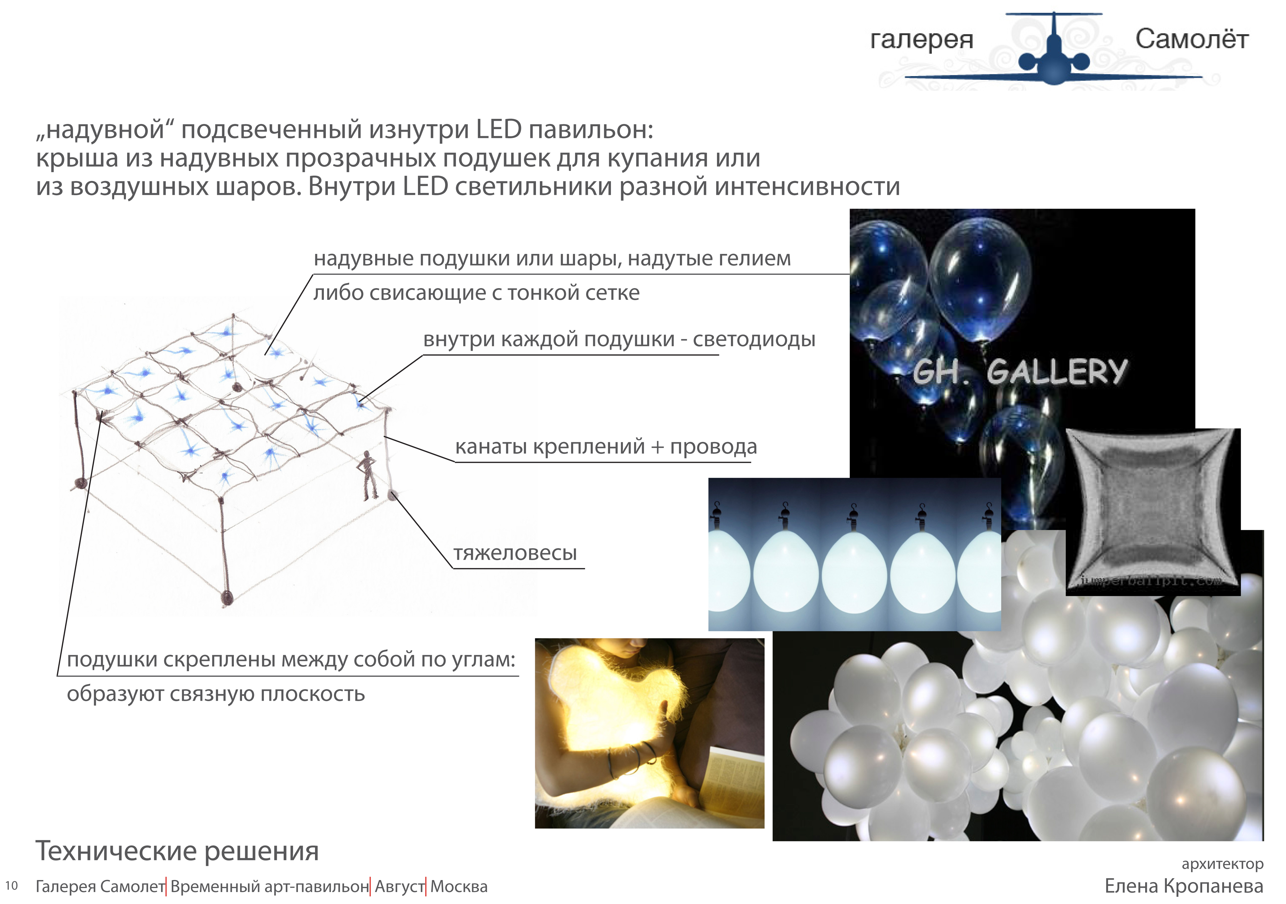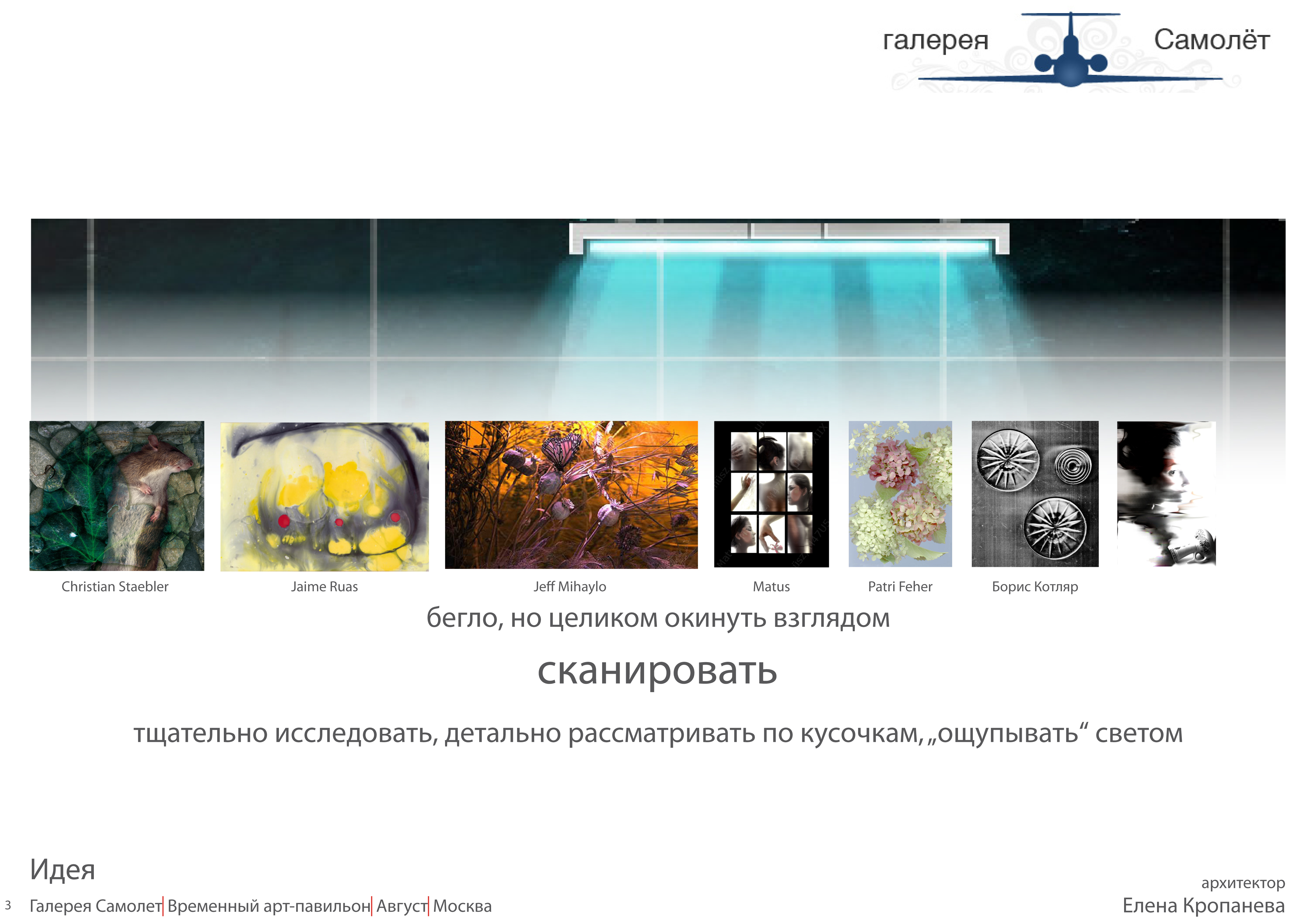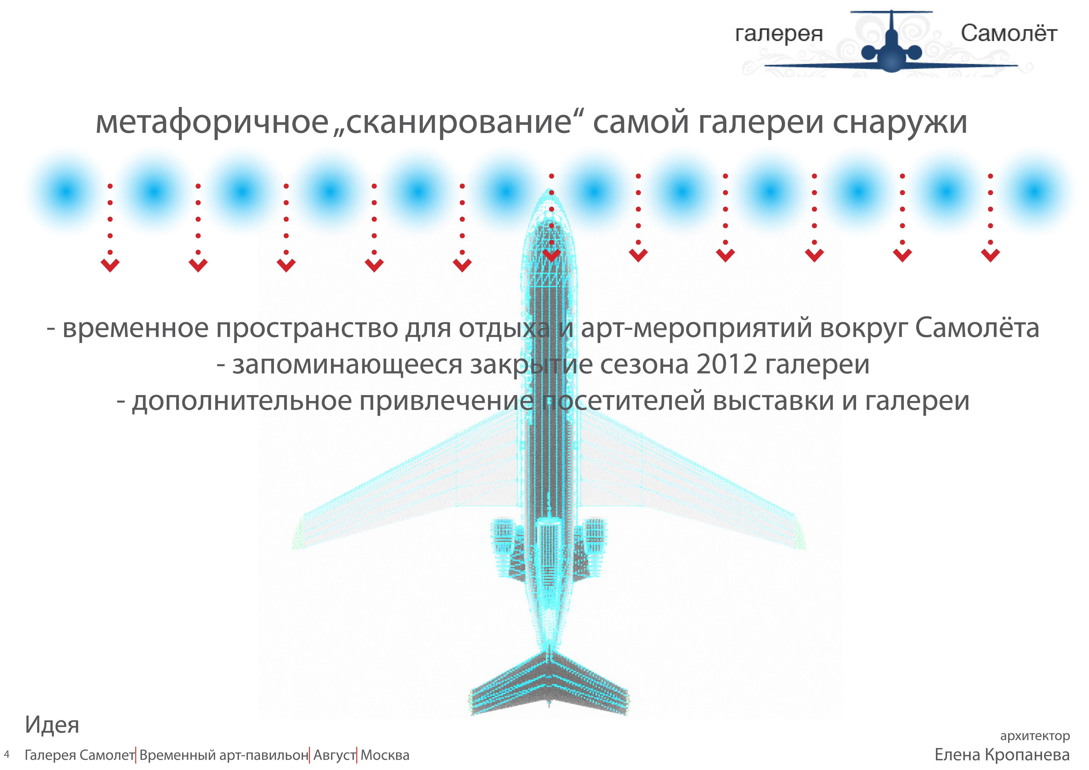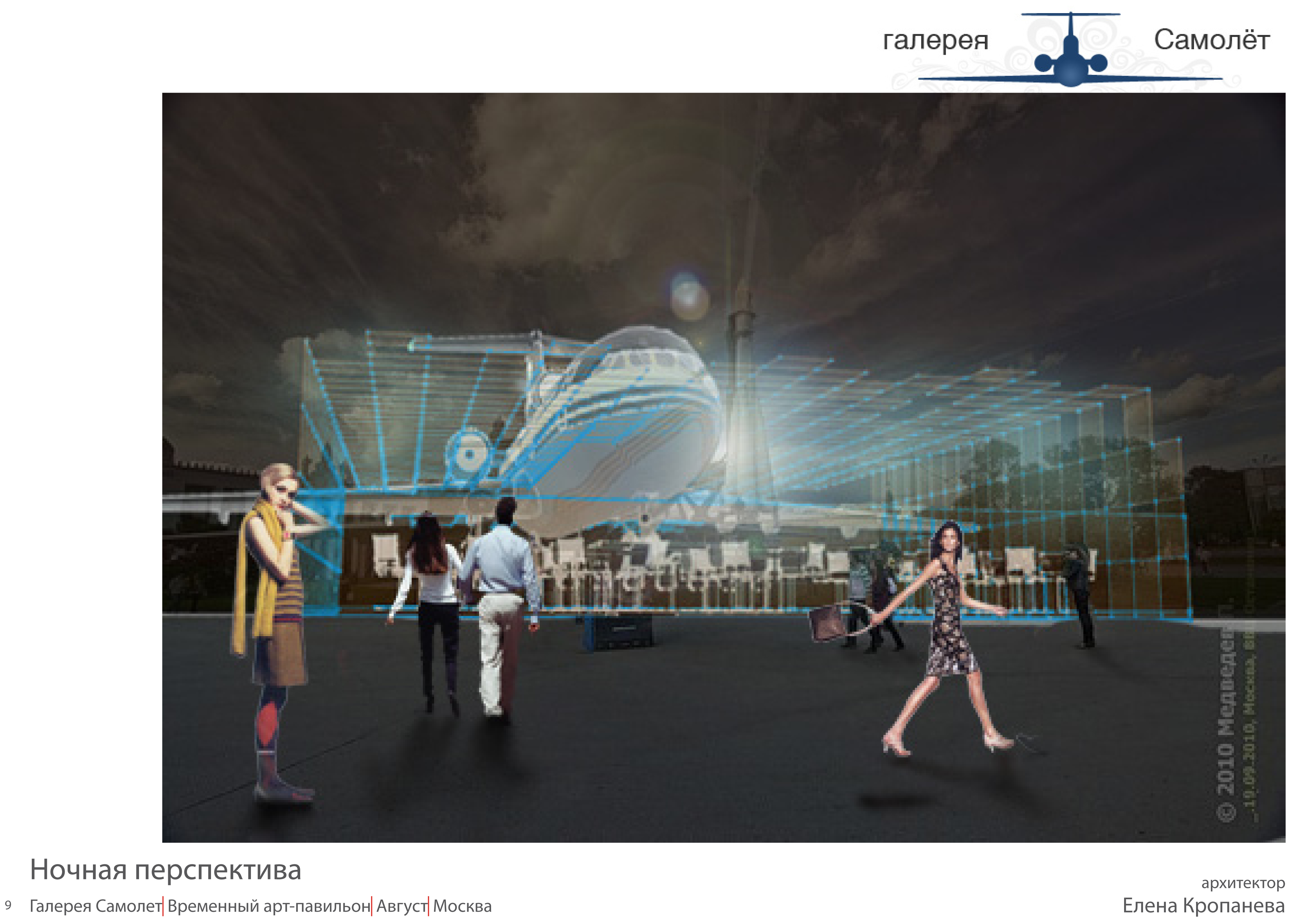 Арт-галерея САМОЛЕТ располагается в старом самолет Yak-42 на территории ВДНХ. Наброски изображают летнюю временную веранду с надувной крышей.